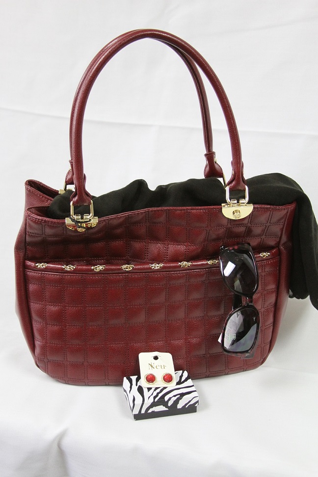 Cheer on the Mules and Jennies in style with this stunning Antonio Melani purse! Also includes a black scarf, sunglasses and earrings. Make sure to stop by The Change Jar for more accessories and outfits to complete this great set.